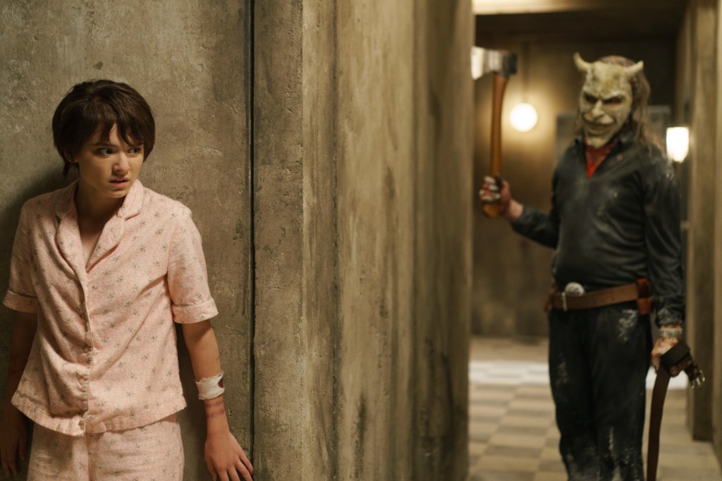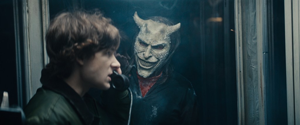 Mason Thames, welchen wir dieses Jahr schon zum dritten Mal im Kino sehen können, nach How To Train Your Dragon und Regretting you, kehrt als den nun jungen Erwachsenen Finney Blake zurück. Seine Performance im ersten Black Phone war keine einmalige Sache, auch hier überzeugt der junge Amerikaner erneut. Ins Rampenlicht tritt aber seine kleine Schwester Gwen, gespielt von der talentierten Madeleine McGraw, die hier die eigentliche Hauptrolle übernehmen darf. Die von Träumen geplagte und wortgewandte Gwen, spielt sie authentisch, mit einer unglaublichen Intensität und überzeugt auch in den humorvolleren Szenen mit tollen One-Liners; wie z.B. “Fuck you with a dinosaur dick!”. Der grösste Kritikpunkt, an das 30 Millionen teure Horror-Sequel, betrifft die Kulisse. Gewisse Sequenzen wurden vor Ort in Kanada in echtem Schnee gedreht und gewisse Sequenzen; speziell die Szenen auf dem gefrorenen See, wurden auffallend in einem Studio abgedreht. Sehr Schade – denn sonst ist das Set hervorragend mit kreativen Lokationen und tollen Merkmalen ausgestattet, wie die leuchtend roten Neon Lichter in den Schlafräumen.